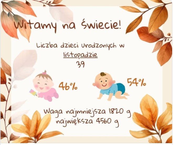 Witamy na świecie! Liczba dzieci urodzonych w listopadzie w naszym szpitalu to 39.